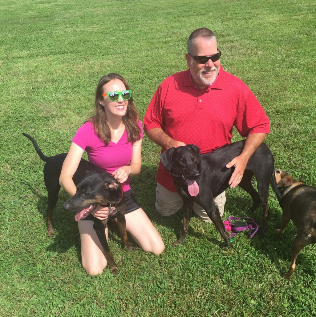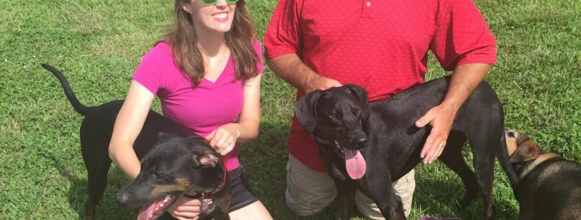 “Our Plott Hound / Doberman mixes were adopted last fall and turned a year old this May. There were 4 puppies in the litter. Eric and Michelle Peterson adopted “Freddie”and we adopted “Leo.”