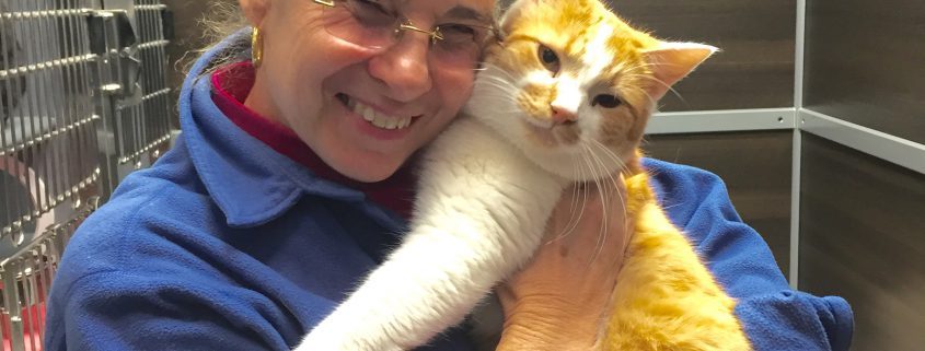 What a Happy Tail! We had cats for only a few days at our new mini cat adoption center in Hendersonville Petsmart when Peaches here snuggled her way into a new home just in time for Thanksgiving! Congratulations to Peaches and her new family! Be sure to see four of our cats there seven days a week and catch us there this Saturday for Hendersonville Petsmart’s Grand Opening!