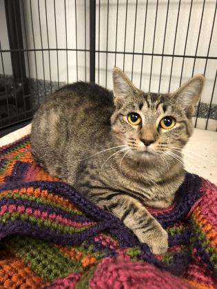 Emerald is about a year old and came from a home with other cats, so would co-exist fine with other kitties. We don’t know about dogs, but we would think she should tolerate mellow ones uninterested in eating cats and kids past the screeching years. Emerald has already been at our adoption center over 2 weeks, so her adoption fee is only $20, and we told her we’d do our best to find her a home today. If you want a quiet, biscuity, gentle kitty to complete the family, we hope you’ll consider Emerald! Please stop by our adoption center to meet her today.