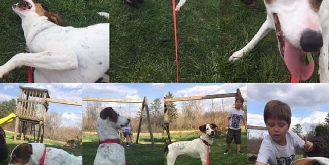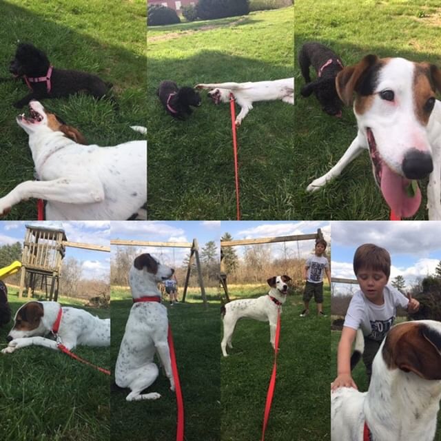 We absolutely loved getting this update about the recently adopted LL Drool J! 8 month old LL really hated being cooped up in a kennel, and his stress led him to almost constant barking. However, outside his kennel he was a happy boy that loved every dog or person he met! We were thrilled to be proven right that he was a fantastic dog that just needed to be given a chance. LL, now Rocky has fit in so well with Lacie and her family, who reported that he politely asks to go outside to potty, sleeps all night without being crated, and hardly barks at all. We’re so happy this sweet guy has another dog and little boy to be his constant companions. Thank you to Lacie for giving this “diamond in the ruff” a chance!
