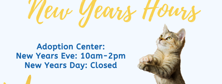 Happy New Year everyone! The Adoption Center and Thrift Store will both be closed on New Years Day and will re-open with regular hours on Thursday, January 2!