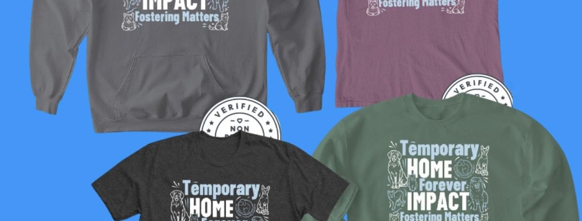 We’ve launched a new Bonfire shirt campaign: Temporary Home, Forever Impact! Each purchase supports our mission to care for animals in foster care which allows them to be in loving homes with proper health care and supplies. Grab a tee or hoodie and help make a difference, because a temporary stay can lead to a lifelong impact.
